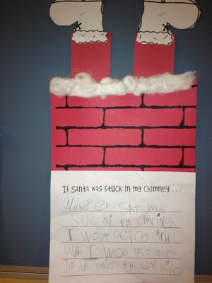 This week I really wanted to do something Christmasy and fun. When I saw this adorable pin, I knew what I wanted to do! We started on Monday by just sitting together and verbalizing our answer to this question: “What would you do if Santa was stuck in your chimney?” Tuesday and Wednesday we took time to get our ideas down on paper and add details to explain our plan of action to help out old Mr. Claus. Today we wrote our final draft and then made our stuck Santas! (Side note: I noticed last week that some of my students felt the need to write on every line that I gave them. So this week I differentiated my paper giving them what they needed based on their rough draft. It worked great!) Here’s just a few examples.