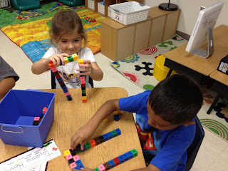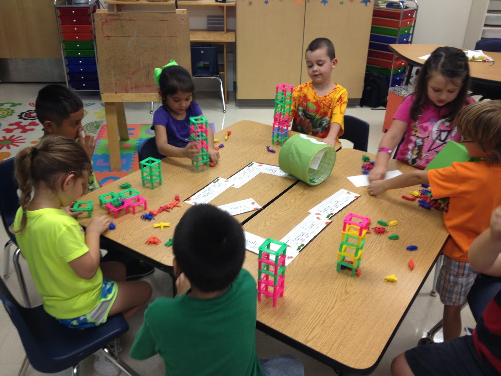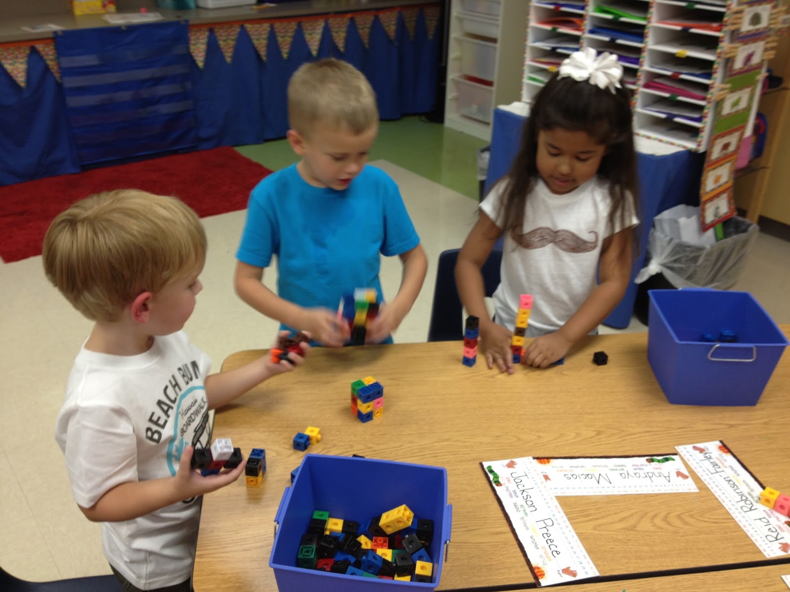 We did lots of exploring at table centers and the kids loved getting to “play” with the different manipulatives. We started doing one table center at a time with other activities in between. By the end of the week we were using the timer, completing the center, cleaning up and switching to a new table center. It was great fun!