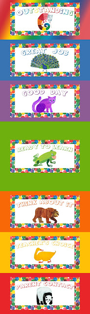 In my classroom, students get to add a bead each time they make it to rainbow and on Friday if they were green or higher the entire week. I just talked it up when I introduced it and the kids want those beads! I also found some star beads – those are my Super Stars and kids earn them for special things (Super Walker when we are working on hallway walking, learning 25 sight words, etc.) When the string gets filled they get to tie it up in a necklace and wear it in class or take it home. Then they will start over. For now, at least, its working. Our school has a school wide behavior program that students earn tickets to spend at a little store so this is where they can earn their trinkets.