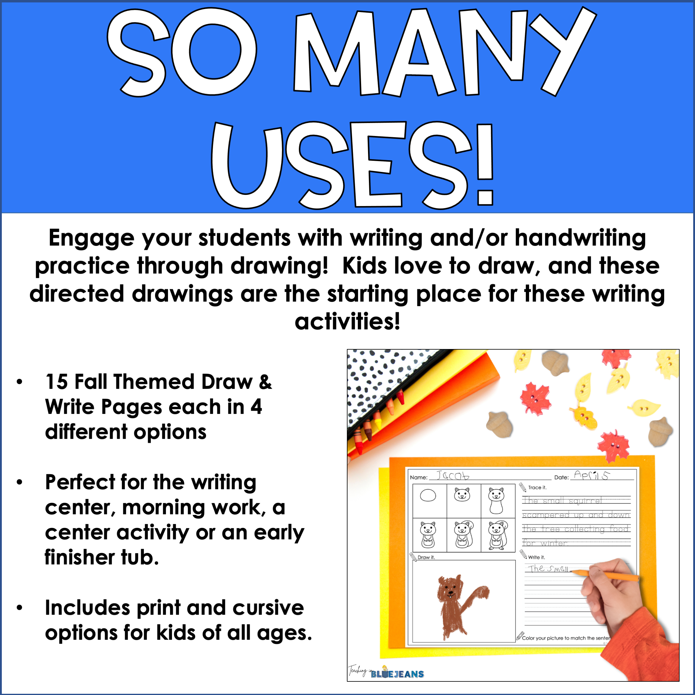 This flexible writing set builds confidence, encourages creativity, and supports handwriting fluency — all while celebrating the magic of fall. Grab it now to bring drawing and writing together in one easy-to-use resource!