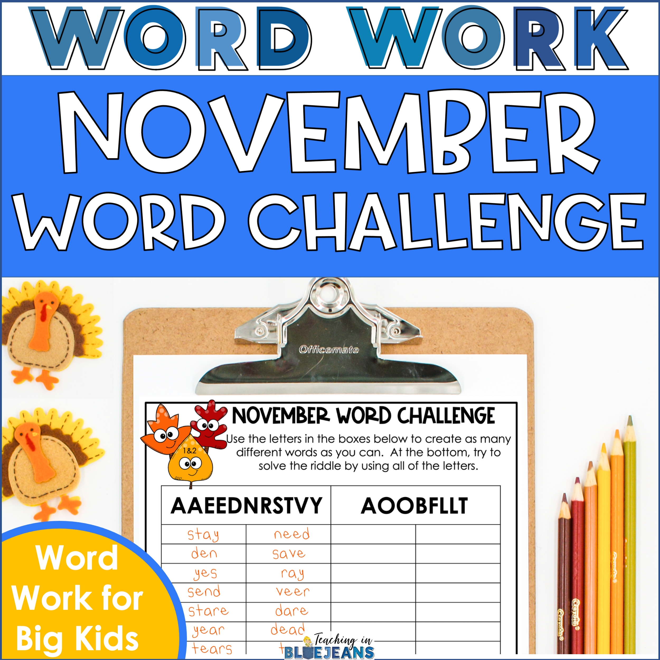 Make spelling practice something your students actually look forward to! This November-themed word work set is part game, part puzzle — and all about engagement. Designed for 2nd through 5th grade learners, these Making Words activities help kids build spelling skills and word recognition through play.
