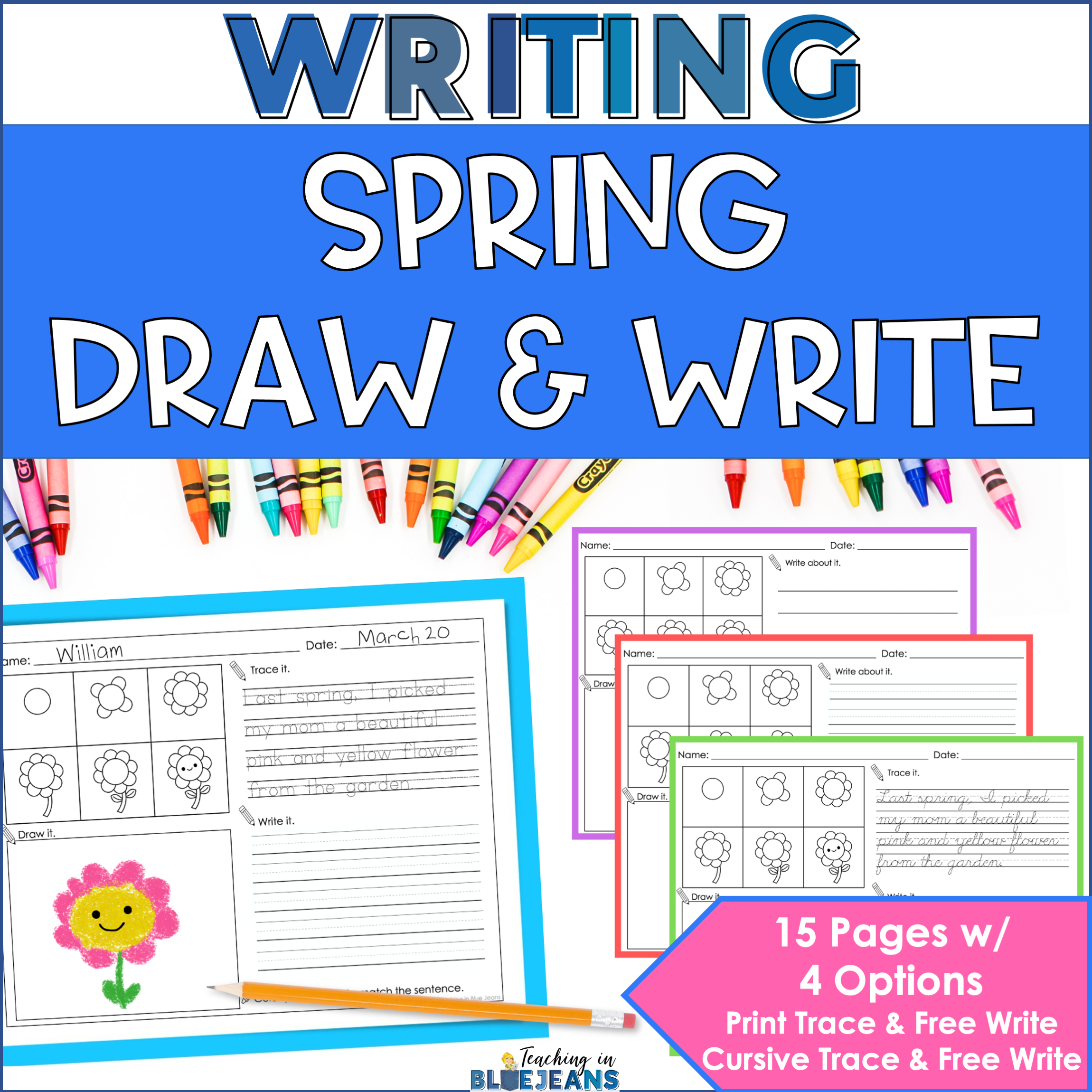 - 12 Spring Drawing Prompts With Trace-and-Cursive Sentences